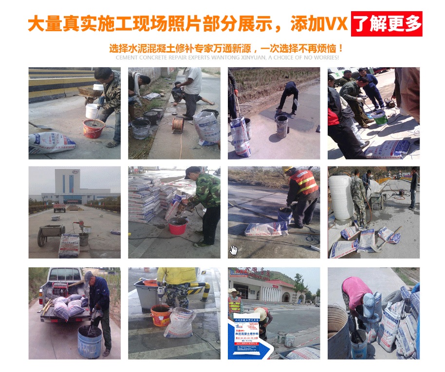 大慶萬通新源科技有限公司獨有的混凝土路面高強速補料,是水泥混凝土路面病害修復的好材料。疲勞、凍融循環(huán)、彎曲壓力、滲水和基層破壞等原因都會引起水泥路面的破損,從而帶來高昂的維護費用。與以往的剛性修補方法不同,混凝土水泥路面維修速補膠提供了一種獨特的柔性修補產(chǎn)品和技術,高柔性、高抗拉性,可跨伸縮縫施工和高抗壓性使得混凝土快補產(chǎn)品為水泥混凝土路面提供了******性的修補。傳統(tǒng)的剛性修補方案,如環(huán)氧砂漿和快干水泥產(chǎn)品,由于其自身的粘結失效,抗疲勞性低以及與原路面不同的伸縮系數(shù),修補面會在短時間內失效或產(chǎn)生新的裂縫,需要反復修補,有效期短且費用高昂。大慶萬通新源科技有限公司的混凝土水泥路面維修速補膠可以隨原路面一起伸縮,移動,從而避免了粘結失效和產(chǎn)生新裂縫。萬通快補產(chǎn)品優(yōu)異的粘結性、柔韌性和高防滑性,特別適用于水泥路面的淺層粘合修補,多邊角混凝土板層修補,跨伸縮縫修補以及路面沉陷修補。萬通混凝土病害修補料針對混凝土起皮起沙、斷板裂縫、蜂窩麻面、坑槽露石子、漏筋掉皮、橋梁的掉皮漏筋快速通車使用時間長。應用萬通快補產(chǎn)品,施工后一天就可以恢復交通。大慶萬通新源科技有限公司的萬通水泥路面維修速補膠適用于高速公路、機場路面、農村村村通路面、廠坪、學校操場、市區(qū)公路、小區(qū)路面、橋梁、水泥路面的修補。使用萬通特快補材料修補路面可以一勞永逸! 水泥地面起砂怎么辦,混凝土修補劑混凝土地面起砂,混凝土地面修補,地面起砂怎么辦,